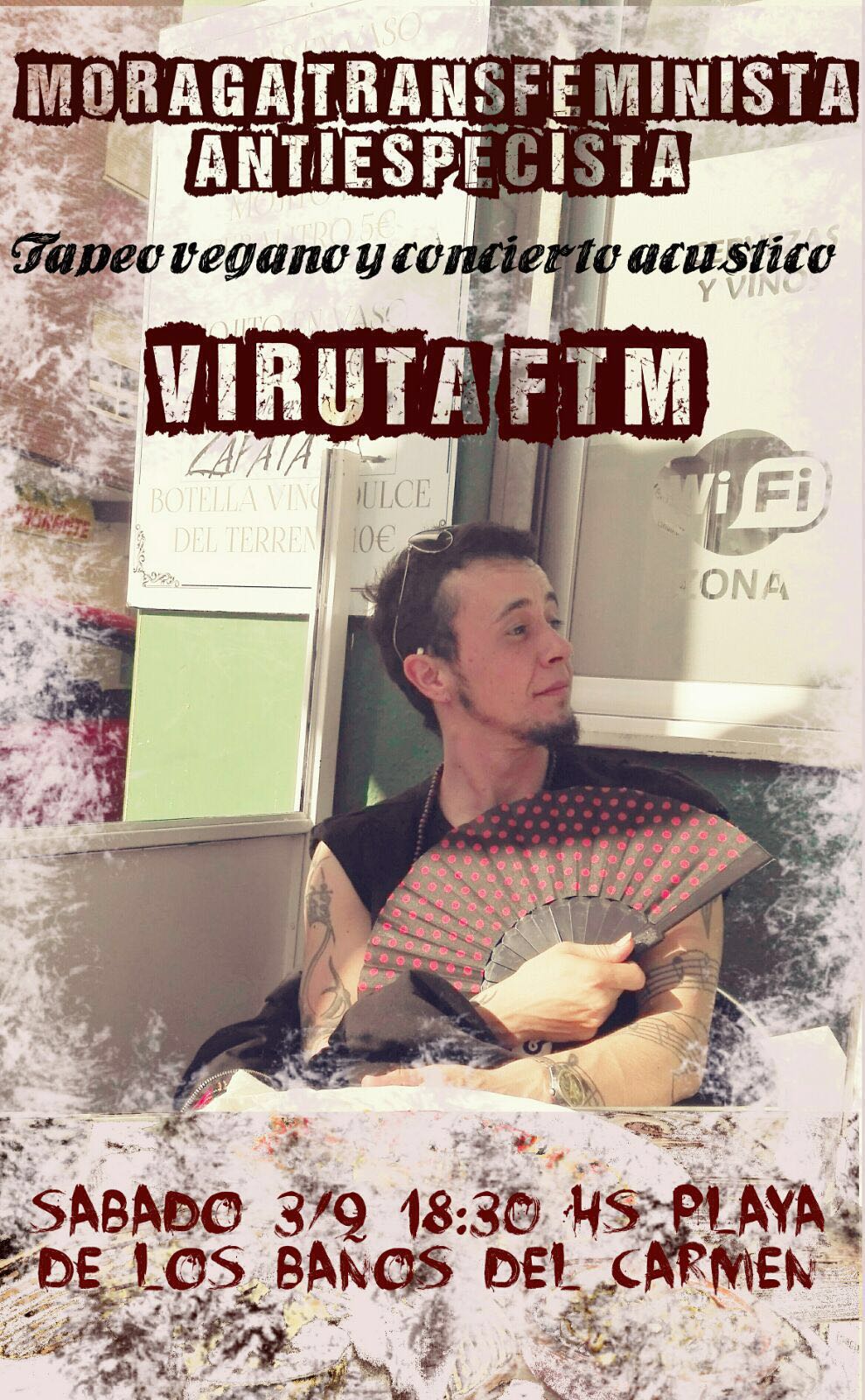 Viruta FTM vendrá a Málaga el sábado 3 de septiembre. Tapeo vegano y concierto acústico, a las 18:30 en la playa de los Baños del Carmen.